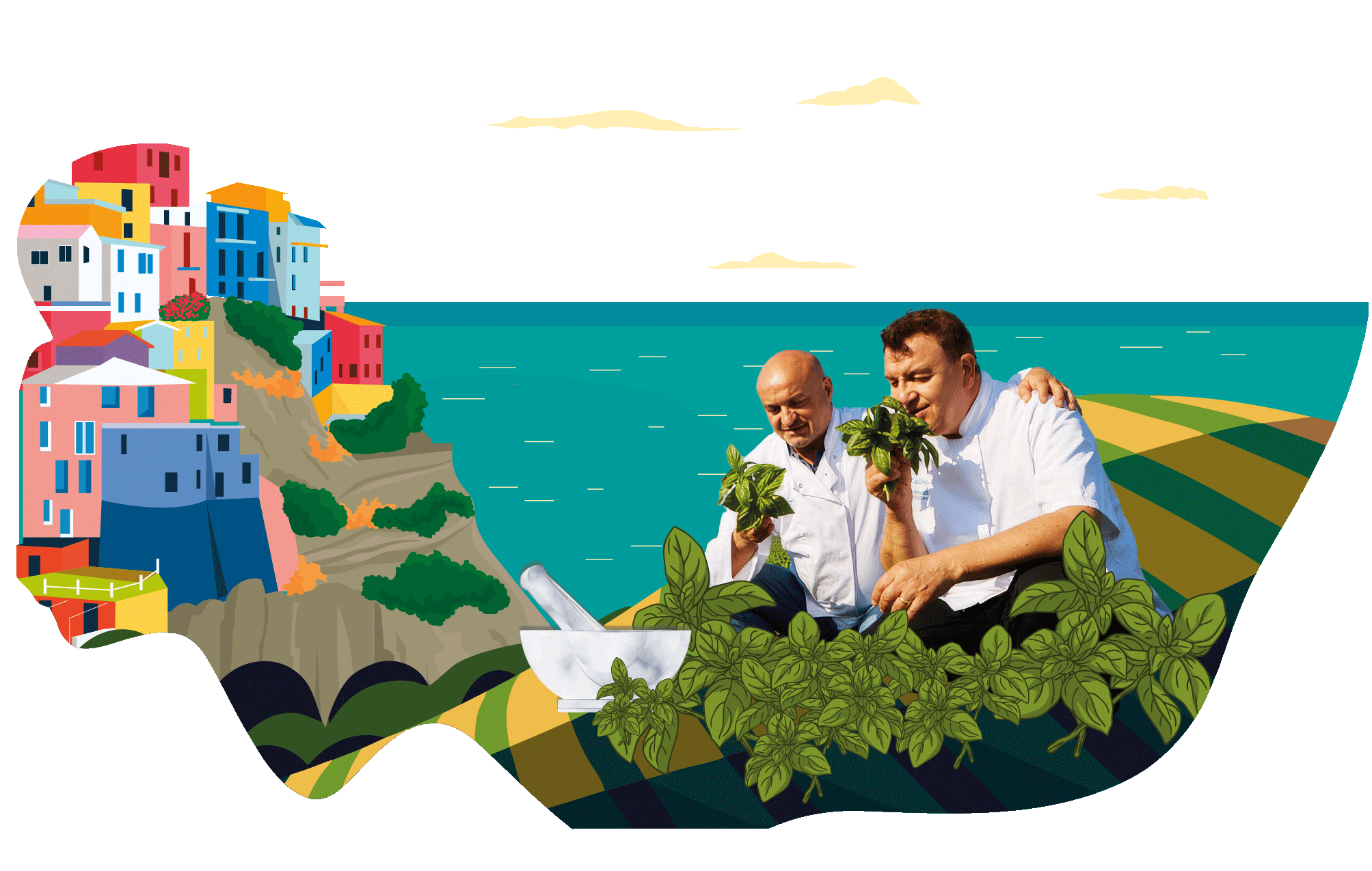 A sensory journey that begins in the sun-kissed soils of Liguria. Here, among the soft hills and the crystal clear sea, the Genovese Basil PDO is born, an excellence that embodies the intense aroma and unmistakable flavor of this splendid region.