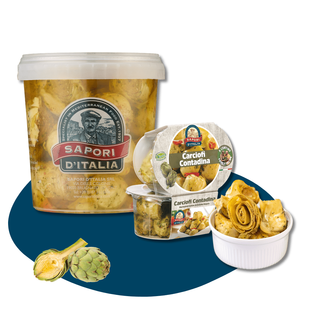 Coltivati in Sicilia e marinati secondo una ricetta tradizionale italiana, i nostri cuori di carciofo interi offrono una consistenza soda ma tenera, capace di trattenere ancor più intensamente i sapori della marinatura all'interno dei loro delicati strati. Arricchiti con olio extravergine di oliva, peperoni dolci, erbe aromatiche italiane, aglio e un tocco di peperoncino, regalano un equilibrio perfetto tra acidità, dolcezza e un profondo sapore mediterraneo.