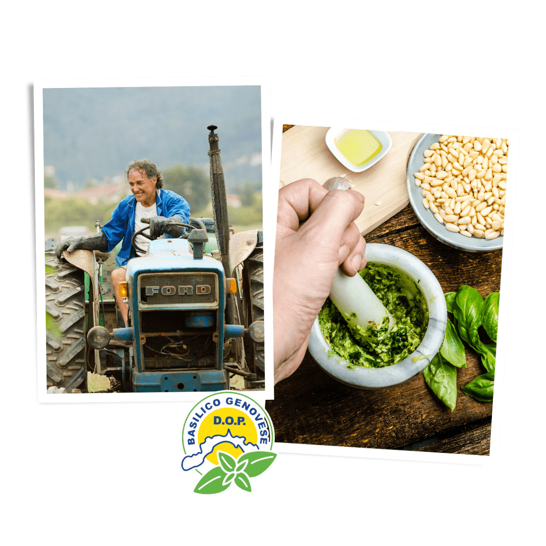 Nel cuore della Liguria, la patria del pesto, coltiviamo con orgoglio il nostro Basilico Genovese DOP nei campi che circondano il nostro stabilimento di produzione. Questo basilico eccezionale, certificato e riconosciuto per la sua qualità unica, è l'anima dei nostri pesti, tutti realizzati esclusivamente presso il nostro sito produttivo.